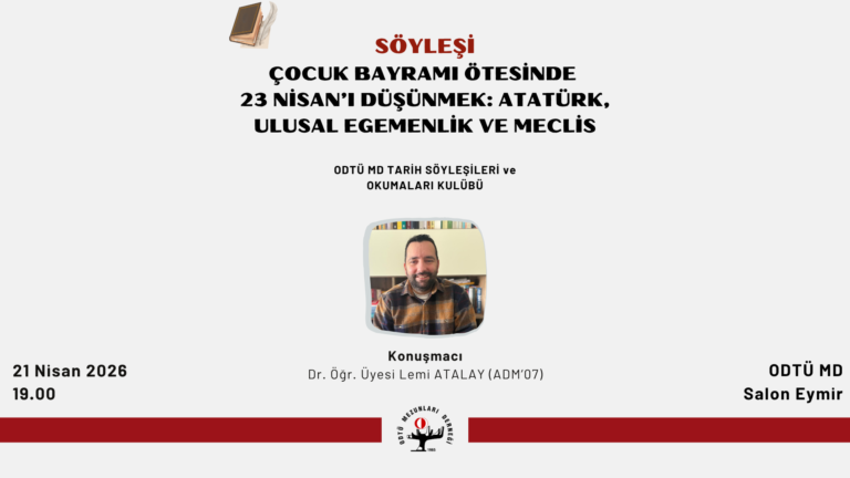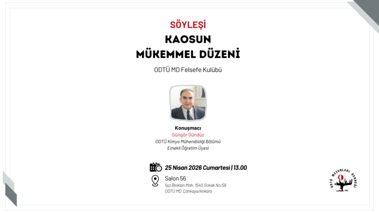 ODTÜ Mezunları Derneği bünyesinde çalışmalarını yürüten Felsefe Kulübünün söyleşi etkinliğine davetlisiniz. 25 Nisan Cumartesi günü saat 13.00’te gerçekleşecek etkinlikte ODTÜ Kimya Mühendisliği Bölümü Emekli Öğretim