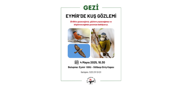 ODTÜ Mezunları Derneği Eymir ve ODTÜ Doğasını Koruma Komisyonu çalışmaları çerçevesinde 4 Mayıs 2025 Pazar günü, saat 10.30’da “Eymir’de Kuş Gözlemi” temalı doğa gezisi gerçekleştirilecektir.