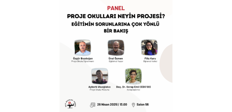 ODTÜ Mezunları Derneği olarak sizleri 26 Nisan 2025 Cumartesi günü saat 13.00’te “Proje Okulları Neyin Projesi? Eğitimin Sorunlarına Çok Yönlü Bir Bakış” paneline davet ediyoruz.