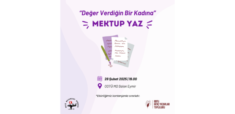ODTÜ MD Edebiyat Kulübü’nün 20. Yılı etkinlikleri kapsamında Ozan-Der iş birliğiyle planlanan 28 Şubat akşamı saat 19.30’da Salon 56’da gerçekleşecek “Yaşayan Şiir Gecesi” etkinliğine davetlisiniz. Moderatörlüğünü Psikolog Yazar Şule İzgi