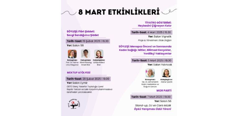 ODTÜ Mezunları Derneği Toplumsal Cinsiyet Eşitliği Komitesi, 8 Mart Dünya Kadınlar Günü kapsamında ve 14 Şubat Sevgililer Günü çerçevesinde 15 Şubat 2025 günü saat 16.30’da