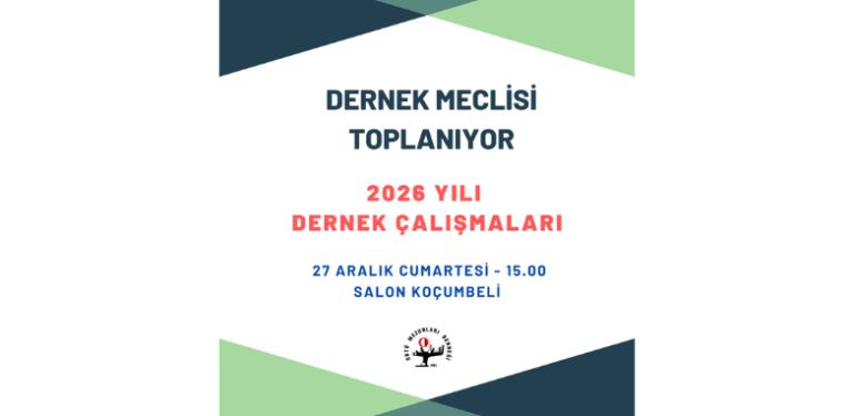 Dernek Meclisi’nin 46. toplantısı 27 Aralık Cumartesi günü saat 15.00’te Salon Koçumbeli’de yapılacaktır. Tüm üyelerimizin katkı ve katılımını bekliyoruz. Dernek Meclisi Yönergesine https://odtumd.org.tr/wp-content/uploads/2025/03/Dernek-Meclisi-Yonergesi-2.pdf bağlantısından ulaşabilirsiniz.