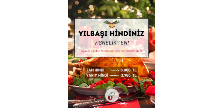 Yılbaşını aileniz ve dostlarınızla evde geçirmeyi planlıyorsanız, Vişnelik aşçıları tarafından özel olarak hazırlanan “Yılbaşı Hindisi, Meze ve Tatlı” siparişi vermenin tam zamanı! Bu yılbaşının sizlere ve