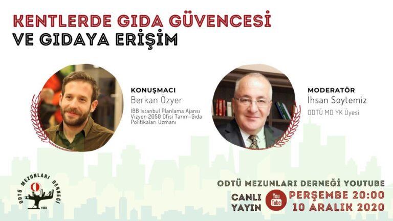 10 Aralık 2020 Perşembe günü saat 20:00’da YouTube üzerinden İhsan SOYTEMİZ moderatörlüğünde Berkan ÖZYER ile “KENTLERDE GIDA GÜVENLİĞİ ve GIDAYA ERİŞİM” başlığını konuşmak için bir araya geliyor. Buluşmak