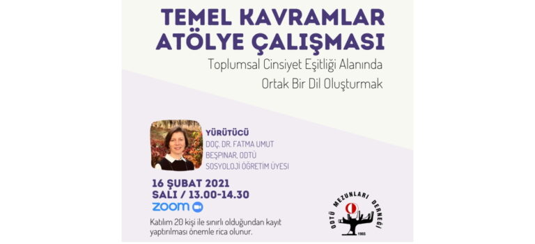 TOPLUMSAL CİNSİYET EŞİTLİĞİ TEMEL KAVRAMLAR ATÖLYE ÇALIŞMASI ODTÜ Mezunları Derneği Toplumsal Cinsiyet Eşitliği (TCE) Komisyonu tarafından 16 Şubat 2021 Salı günü Saat 13.00-14.30 arasında “Temel