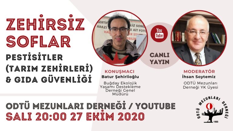27 Ekim 2020 Salı günü saat 20:00’de YouTube üzerinden İhsan SOYTEMİZ moderatörlüğünde, Batur ŞEHİRLİOĞLU ile “ZEHİRSİZ SOFRALAR” başlıklı söyleşi gerçekleştirilecektir. Buluşmak dileği ve saygılarımızla, Program Tarih: 27 Ekim 2020, Salı Saat: 20:00