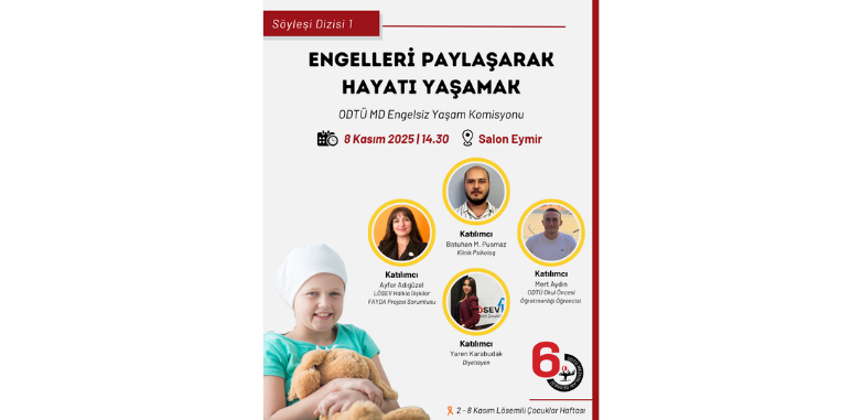 ODTÜ Mezunları Derneği bünyesinde uzun süredir faaliyetlerini sürdüren Engelsiz Yaşam Komisyonu, 2025 – 2026 Döneminin söyleşi dizisinin ilkini 8 Kasım 2025 Cumartesi günün saat 14.30’da