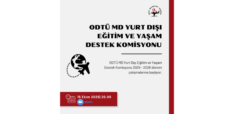 ODTÜ Mezunları Derneği bünyesinde faaliyet gösteren Yurt Dışı Eğitim ve Yaşam Destek Komisyonu 2025 – 2026 dönem çalışmalarına başlıyor. Konu ile ilgilenen tüm üye, mezun