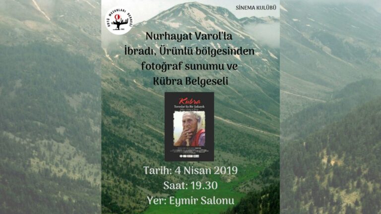 Sinema Kulübü’nün nisan ayı ilk buluşması 4 Nisan 2019 Perşembe Günü, saat 19.30’da, Eymir Salonu’nda yapılacaktır. Buluşmamızda, Nurhayat Varol’un (MATH’83) gözünden 83 yaşındaki Kübra Teyze’yi izleyeceğiz. Yönetmenliğini ve senaristliğini Nurhayat