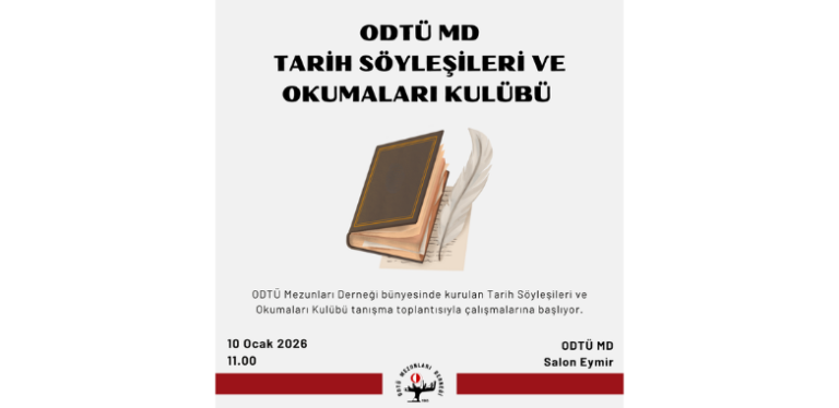 ODTÜ Mezunları Derneği bünyesinde kurulan Tarih Söyleşileri ve Okumaları Kulübü tanışma toplantısıyla çalışmalarına başlıyor. Dünya tarihinin dönüm noktaları ile Türkiye tarihindeki gelişmeleri yan yana koyarak,
