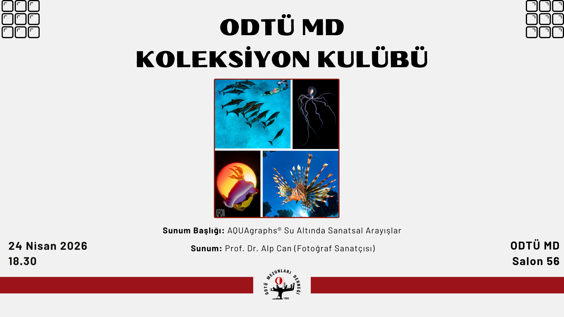 24 Nisan Cuma akşamı saat 18.30’da Salon 56’da gerçekleşecek toplantıda; “Su Altında Sanatsal Arayışlar” başlığıyla sunum yapacak Prof. Dr. Alp Can, hücre biyolojisi, histoloji ve embriyoloji alanlarında uzmanlaşmış olup halen Ankara Üniversitesi’nde görev yapmaktadır. Fotoğrafçılık ise onun için, çevresini gözlemleme ve belgeleme pratiğinin önemli bir parçasıdır. (www.alpcan.com)