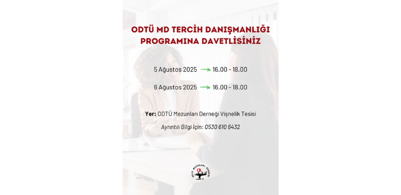 ODTÜ Mezunları Derneği olarak, üniversite tercihi yapacak olan arkadaşlarımız için hem üniversitemizi tanıtacak hem de tercihlerinde yardımcı olacak bir tanıtım ve danışmanlık programı hazırladık.*