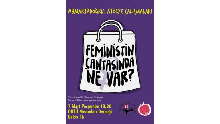 8 Mart yaklaşırken derneğimizde kadın etkinlikleri devam ediyor. Nar Kadın Dayanışması ile birlikte düzenleyeceğimiz; Sara Ahmed’in “Feminist Bir Yaşam Sürmek” kitabından uyarlanan Feministin Çantasında Ne