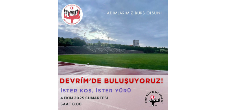 Dönemin ilk buluşmasında siz de Maraton Çalışma Grubumuza katılıp spor yapmak, öğrencilerimizle dayanışmak, burs fonunu büyütmek ve grubumuza güç vermek isterseniz 4 Ekim 2025 Cumartesi günü saat 08.00’de Devrim’de buluşalım.