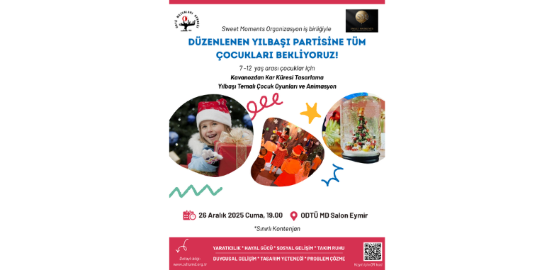 ODTÜ MD ve Sweet Moments Organizasyon iş birliğiyle 7-12 yaş grubu çocukların hem eğlenip hem de yeni beceriler kazanacağı bilimden sanata, mutfaktan tasarıma uzanan Çocuk Atölyeleri devam ediyor.